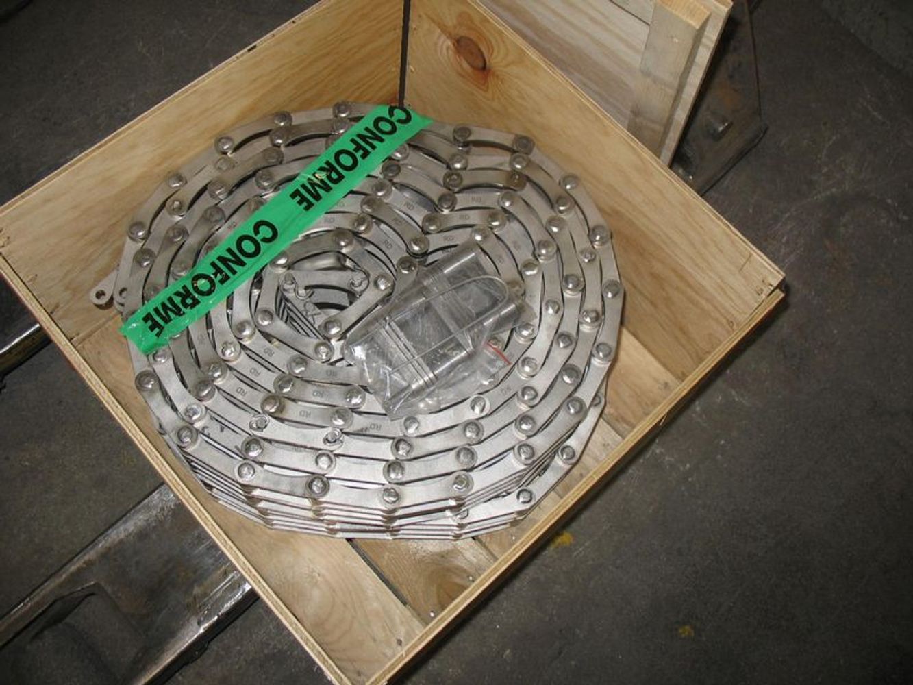 Jedná se o řetězy pro pece s několika komorami ("dávkové" pece typu IPSEN nebo CIEFFE) zavážející vsázku z jednoho místa na druhé (např. z procesní do kalicí komory). V našem sortimentu jsou jak standardní modely, zejména sety řetězů o rozměrech 41,4 až 63,6 mm (se standardním nebo vyztuženým obložením), tak i výroba dalších specifických zadání podle Vašich požadavků.